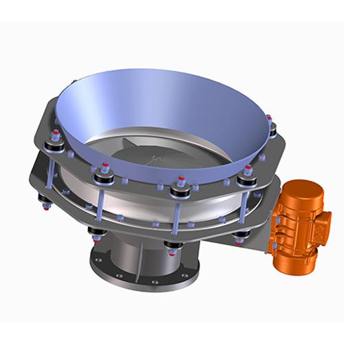La fluidez de algunos materiales en polvo a granel es muy pobre y la operación de descarga no se puede realizar mediante varios métodos de flujo auxiliar, como vibradores de pared de silo, martillos neumáticos, martillos e incluso cañones de aire. La vibración horizontal del VRV Activador del recipiente genera fuerzas de corte, lo que permite el flujo continuo de material a granel. Está montado debajo de la tolva para romper el arco y alimentar uniformemente.